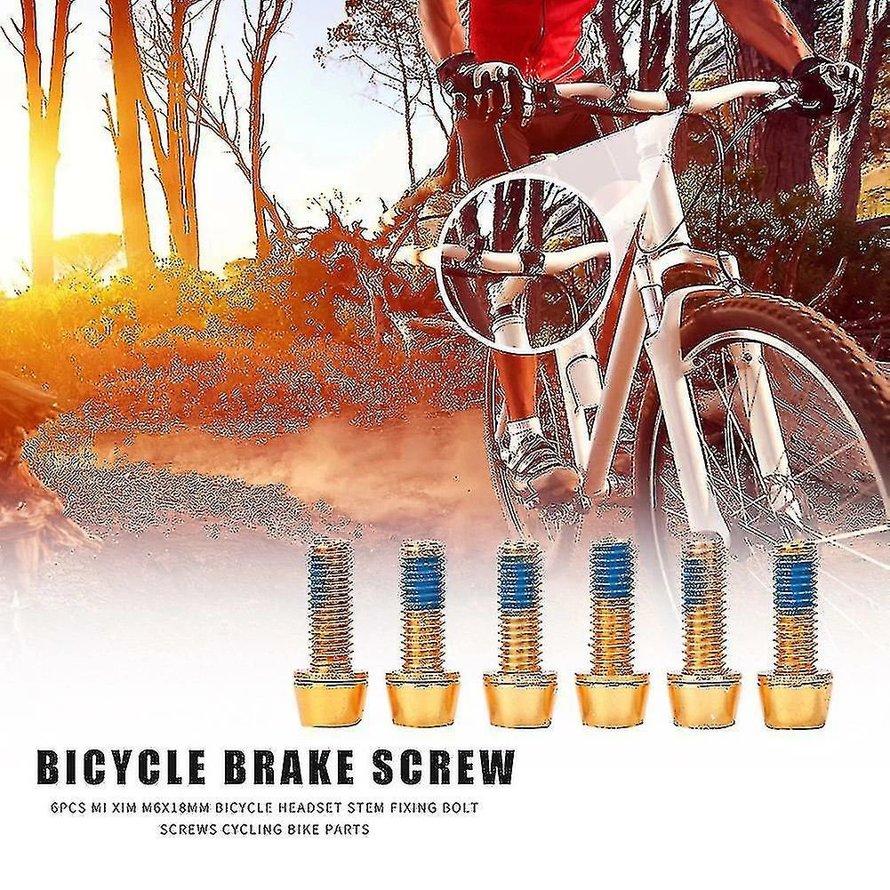 6pcs Mi Xim M6x18mm Bicycle Headset Stem Fixing Bolt Screws for Disc Brake V Brake Cycling Riding Bike PartsSpecification:Main material: SteelColor: Red, Gold, ColorSize: about 18x10x10mm/0.71×0.39×0.39inBolt diameter: 6mm/0.24inNet weight: about 6g(single)Type: M6*18mm, use 5mm hexagon wrenchApplication: generally used to fix front fork end screws, disc brakes, V brakes, etc.Note:1. Due to the different monitor and light effect, the actual color of the item might be slightly different from the color showed on the pictures. Thank you